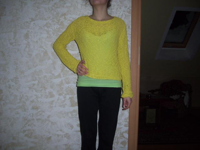 Skylėtas,geltonas megstukas. Tiks ir M dydžiui.