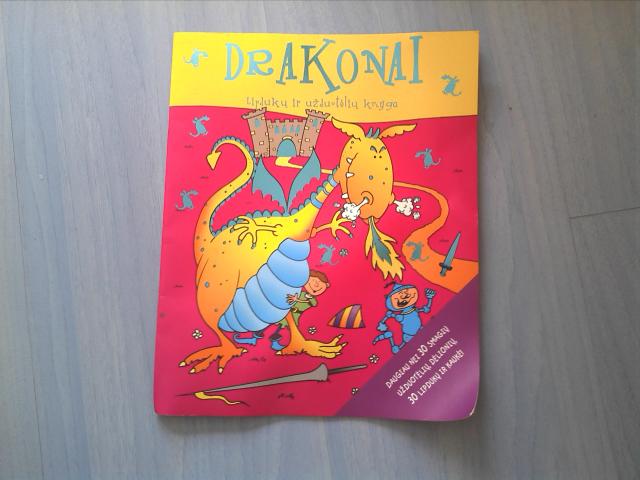 " Drakonai " - lipdukų ir užduotėlių knyga vaikučiams : ) Viršelis vos vos lengvai aplamdytas. Išspręstos gal 3-4 užduotėlės : ) Viduje yra žaidimas.