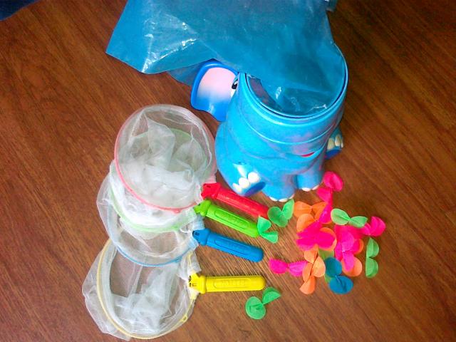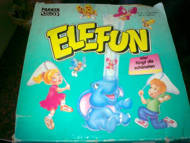 labai mielas zaislas,drambliukas pucia drugelius per straubli, o vaikai su gaudyklem juos gaudo.