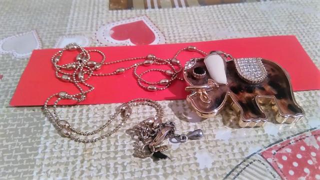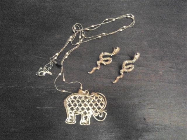 Gauti dovanų, labai originalūs ir kaip nauji, auskarus dėvėjau vos porą kartų, o vėrinio nenešiojau. Drambliukas apie 2cm ilgio,bei rudu akmeniu viduje.Auskarai su mažais kristaliukais.