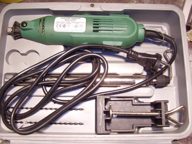 Neypatingos kokybes, bet veikiantis nedaug naudotas dremelis - tiesinis slifuoklis su greicio reguliavimu. Komplekte yra ir papildoma lanksti jungtis, prisukamas stovelis patogesniam naudojimui. Maitinimo itampa 220V, apsukos 10-30tukst/min.