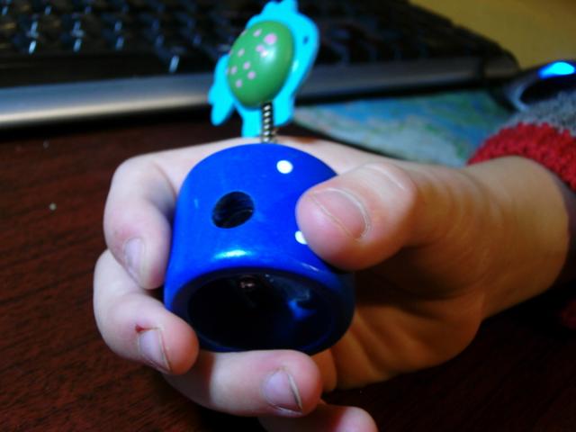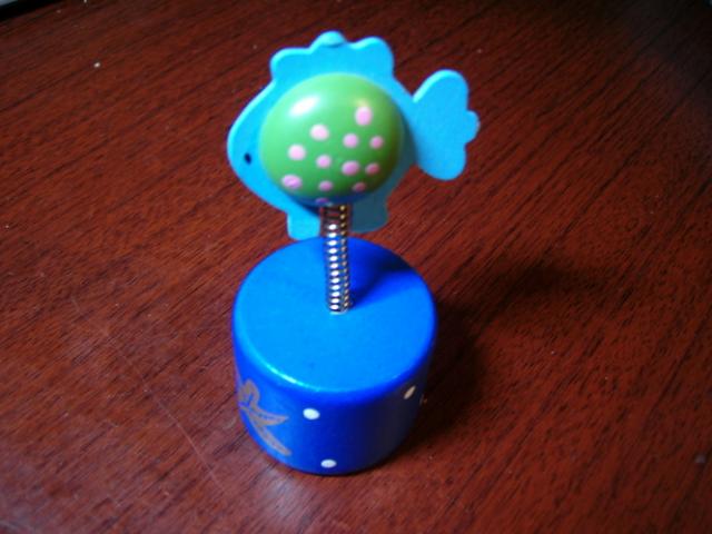 Nenaudotas beveik. Žuvytė ant spyroklės. Gali būti ir kaip žaislas, bet yra ir drožtukas :)