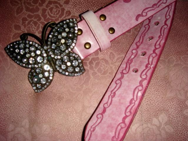 Gerai atrodantis, gražus diržas su drugeliu. Defektas - truksta keliu akučių.
