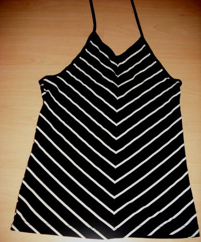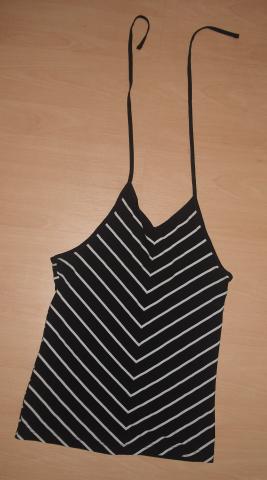Nugaroje surišama dryžuota palaidinė. Ilgis nuo pažasties 40cm. Po krūtine 38cm . Palaidinė siaurinta-galima išleisti ir ji paplatėtų 5cm. Dydis 42