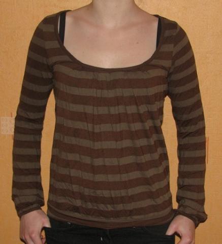 Dryžuota bliuskutė. Dėvėta nedaug, ties apačia šiek tiek apsivėlus, bet realiai nesimato. S dydis.
