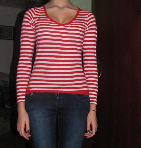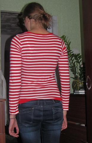 raudona dryžuota maikutė.