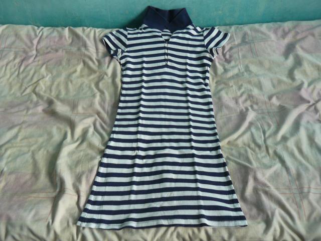 Ilga. kaip ir suknelė. Bet medžiaga labai paprasta. Žiemą gerai, kai labai šalta ir reikia ko daugiau kūno pridengt :D Apykaklė pablukus. Turi iškirptę, bet aš atsargiai su siūlu sukabinau, kad mažesnė būtų, ten išardyt labai paprasta.