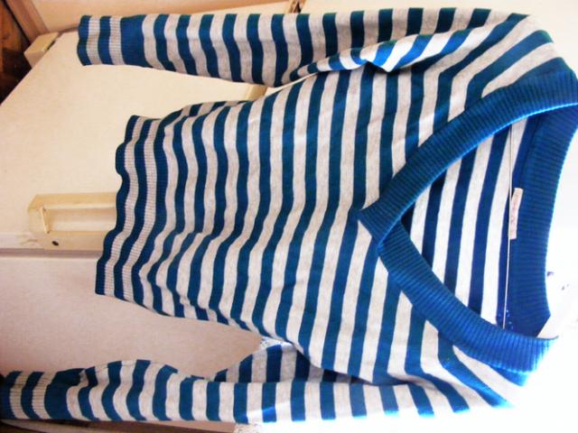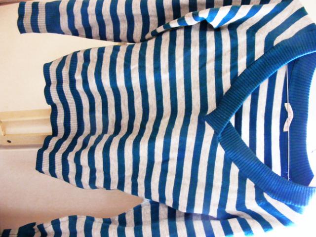 Mėlynai pilkai dryžuotas megztukas, pirkau new yourkery, dydis xs. Labai gražus tik gaila man per mažas.