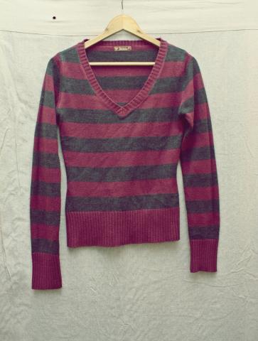 spalva pilka su violetine. tinka ir S dydziui. nesiotas bet puikios bukles, siektiek apsibumbulaves bet tikrai nedaug (:
