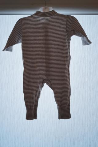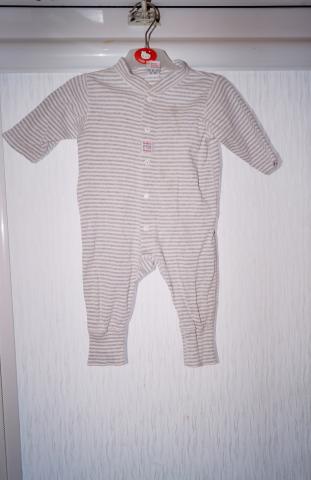 Gražus romperis, nesiburbuliuojanti medžiaga, 100 proc medvilnė, galima skalbti net ant 60 laipsnių. Ilgis 56 cm, nuo klyniuko iki apačios 22 cm, rankovė nuo pažasties 15 cm. Trupučiuką nuo šponkyčių pasitrynę dažai. Yra blanki dėmelė