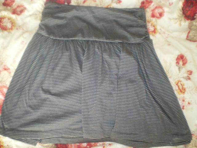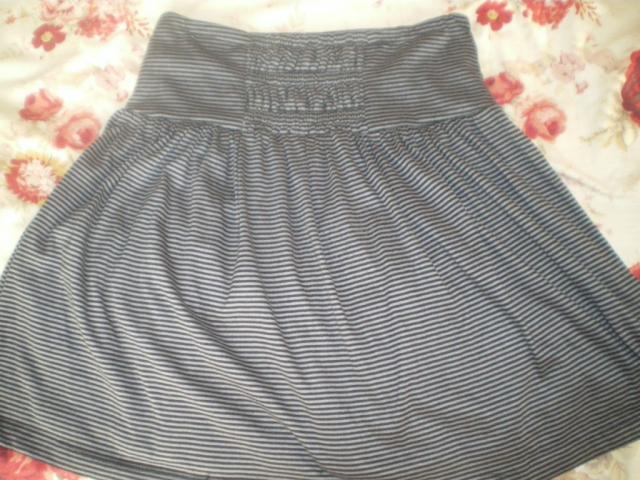 Dryžuotas ( juoda - pilka), plačiu juosmeniu sijonas