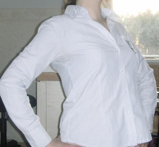 Dryžuoti žydrom labai plonom juostelėm. Šiektiek įliemenuoti, nešioti vos porą kartų. Gražiai atrodo vieni ir po liemenėm, švarkais. Lengvai priderinami.