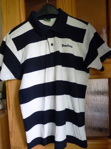 Dryžuoti polo tipo marškinėliai. Nenešioti. Man per dideli, draugui per maži... Gauti dovanų. Memelbrau užrašas priekyje. Kadangi man per dideli tai spėju čia koks 39 dydis. Jei manot kad jums bus naudingi šie marškinėliai rašykit, dėl kainos ar mainų manau susitarsim nesunkiai. Sudėtis: Medvilnė Spalva: mėlyna, balta