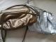 Auksines per apacia 20cm, aukstis per viduri 14cm. Rankena 128cm. Sidabrine su mini defektas (foto). Per placiausia vieta apie 19cm, aukstis be uzsegimo 14cm. Rankena nusegama, 127cm.