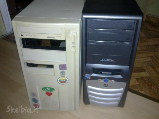 Kompiuteriai pilnai veikiantys. ------------------------------------------ Balta dėžė Intel Celeron 800MHhz PSU 200W RAM 2 x 256MB ATi Radeon R6 SDR64MB Floppy drive +garso plokštė ir neveikiantis CD-ROM 2x IDE HDD (40 ir 80 GB) USB2.0 PCI card ------------------------------------------ Juoda dėžė Processor: Intel(R) Pentium(R) 4 CPU 2.80GHz (2 CPUs) Memory: 512MB RAM PSU 300W Motininė: ABIT AG8-V RADEON X600Pro 128MB DVD ROM SATA HDD 80GB 7200