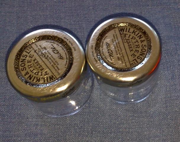 Du mažyčiai 4 cm aukščio stiklainėliai su dangteliais. Tinka dovanai (įdėjus ko nors ypatingai skanaus :)) (c)