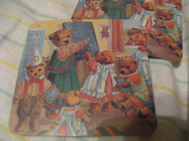du nestoro, bet pablizginto (todėl galima bus panaudoti daugiau nei sykį) kartonėlio padėkliukai po puodeliu. tikrovėje ryškesni, alaus bokalo padėkliuko dydžio