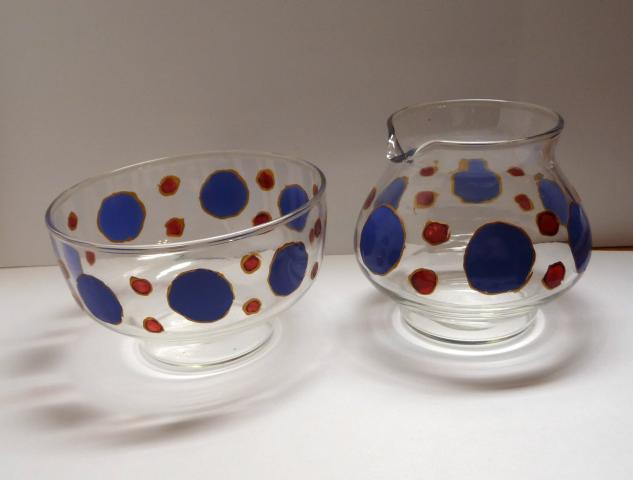 Nedidelis dubenėlis su padažine, išpiešti stiklo dažais.