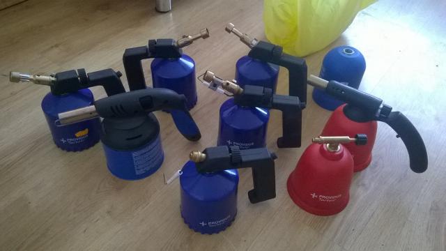 Krūva nenaudotų Providus ir Kemper dujinių degiklių ir jų dalių,geri arba su mažais trūkumais(blogai reguliuojasi dujų padavimas,arba skelia kibirkštį pro šoną).Lengvai sutvarkomi.Kai kurie su pilnais dujų balionėliais.Balionėliai 190G.
