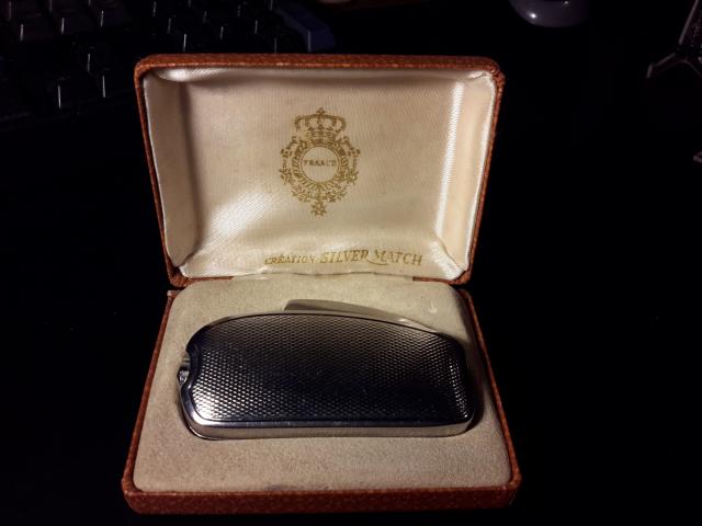 Dujinis žiebtuvėlis "Silver Match" su dėžute. Prancūzija. Neveikia- reikia pakeisti butan bloką.