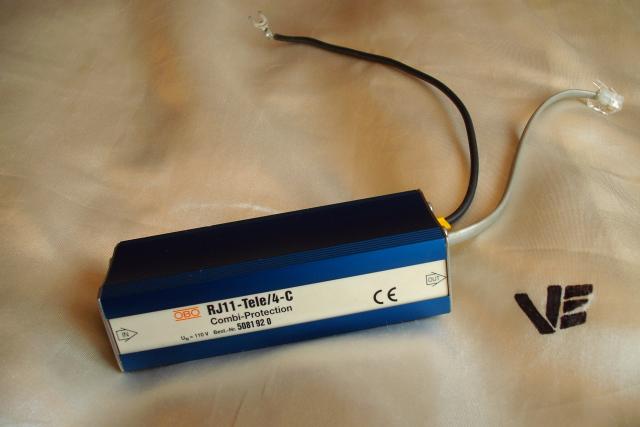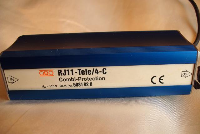Dviejų pakopų apsauga. Saugo nuo žaibo bei nuo kitų staigaus elektros impulso šuolių. Tinka laidiniams telefonams, PC interneto prieigai ir t.t. Siuntimas registruojamas +2 €.