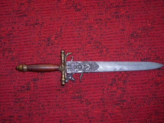 Ilgis 38cm, geležtės plotis 3cm ir siaurėja, geležtės storis 5mm ir siaurėja.