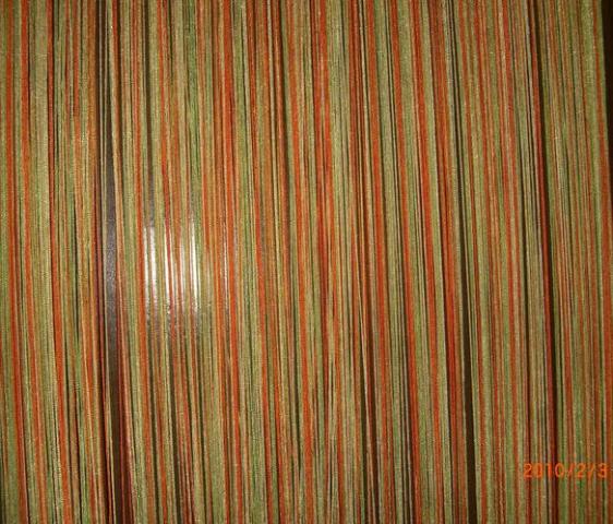 Žalios- geltonos- oranžinės spalvos virvelių užuolaidos. Kabėjo neilgai, nes greit prisivertėme remontuotis, o tada jau užuolaidos pasidarė ne į temą :) Plotis 90 cm