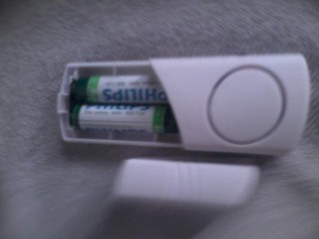 Nauja, belaidė durų signalizacija, prisiklijuoja prie durų ar lango ar taip ko. Dedasi 2 AAA baterijos. Komplektacijojo baterijų nėra.