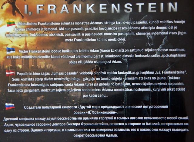 DVD filmas 'Aš, Frankenšteinas' / 'I, Frankenstein' (2014 metai). Žanras: fantastinis, veiksmo. Filmas įgarsintas lietuvių, anglų, rusų kalbomis. Subtitrai: lietuvių, estų, latvių, rusų. Trukmė: 88 min. Režisavo: Stuart Beattie. Trailer: https://www.youtube.com/watch?v=NXc5epxOH_c Dėl kainos ar daiktų mainų galime derėtis.