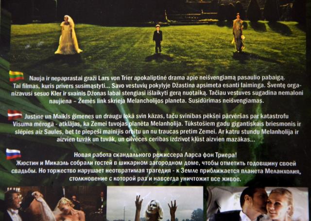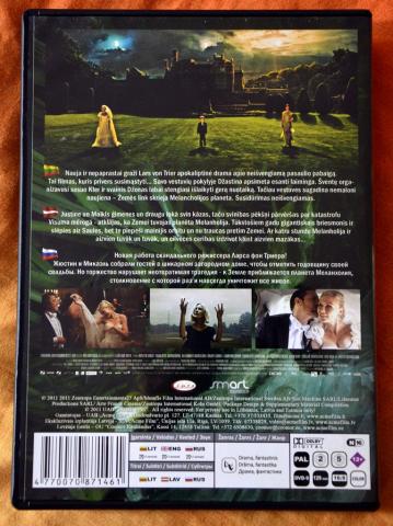 DVD filmas 'Melancholija' / 'Melancholia' (2011 metai). Žanras: drama, trileris, mokslinė fantastika. Filmas įgarsintas lietuvių, anglų, rusų kalbomis. Subtitrai: lietuvių, latvių, rusų. Trukmė: 129 min. Režisavo: Lars von Trier. Trailer: https://www.youtube.com/watch?feature=player_embedded&v=wzD0U841LRM Dėl kainos ar daiktų mainų galime derėtis.
