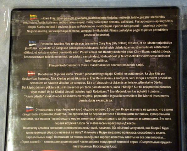 DVD filmas 'Mirties įrankiai: Kaulų miestas' / 'The Mortal Instruments: City of Bones' (2013 metai). Žanras: veiksmas, fantastinis, nuotykiai, romantinis. Filmas įgarsintas lietuvių, anglų, rusų kalbomis. Subtitrai: lietuvių, latvių, estų, rusų. Trukmė: 124 min. Režisavo: Harald Zwart. Trailer: https://www.youtube.com/watch?v=hc4CiTvQ-YE Dėl kainos ar daiktų mainų galime derėtis.