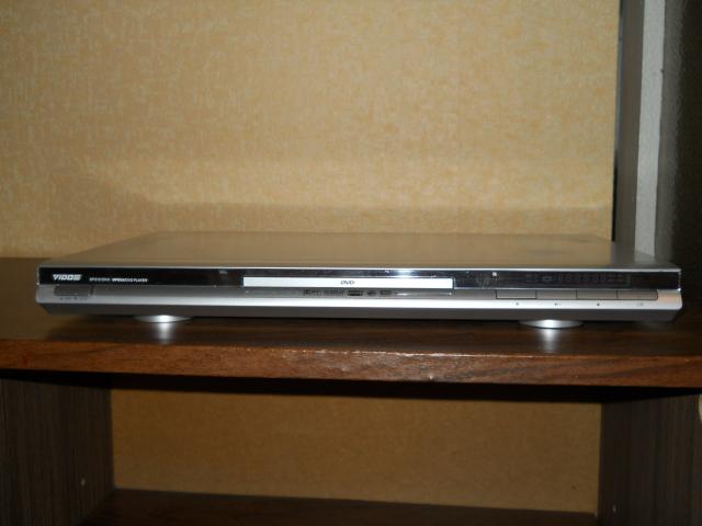DVD grotuvas Vido DP212. Puikiai veikiantis, tik ant viršutinio dangčio matosi įbrėžimai, nes ant jo stovėjo stiprintuvas. Yra nuotolinio valdymo pultelis.