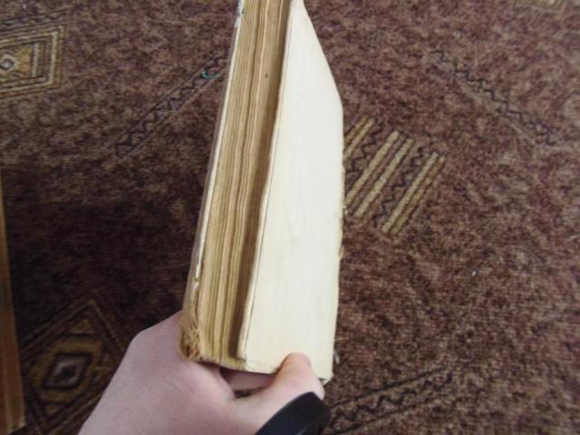 Sena paplyšusi knyga vaikams. Nuplyšęs galinis viršelis.