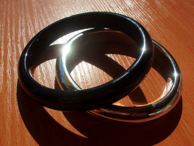 Dvi visiškai naujos apyrankės juoda ir sidabrinė. Vienos kaina - 10 lt.