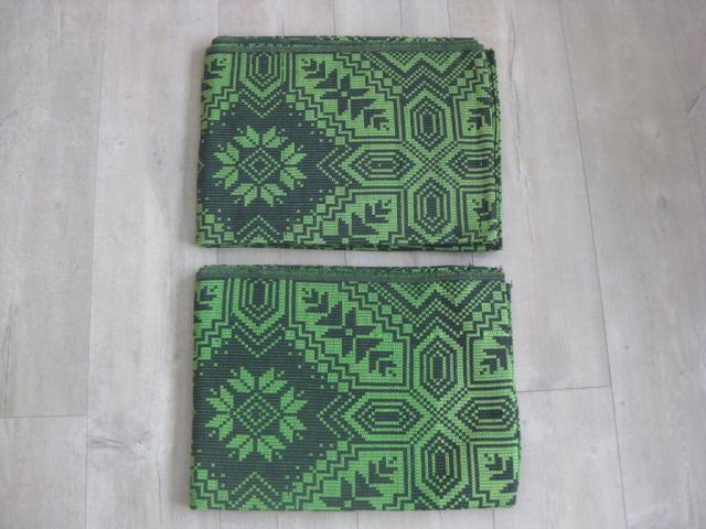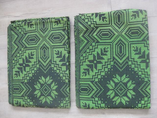 Senovinės. Gali būti kaip lovatiesės arba užuolaidos. Austos senovinėmis staklėmis. Kaina už abi 60 eur. Viena lovatiesė turi porą dėmelių, kurios nekrenta į akis. Išmatavimai 1.47 x 1.97 m.