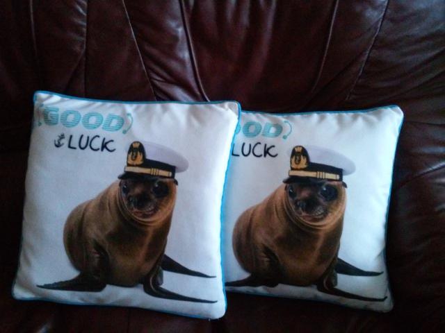Dvi dekoratyvinės pagalvėlės su ruoniais po 10eur.