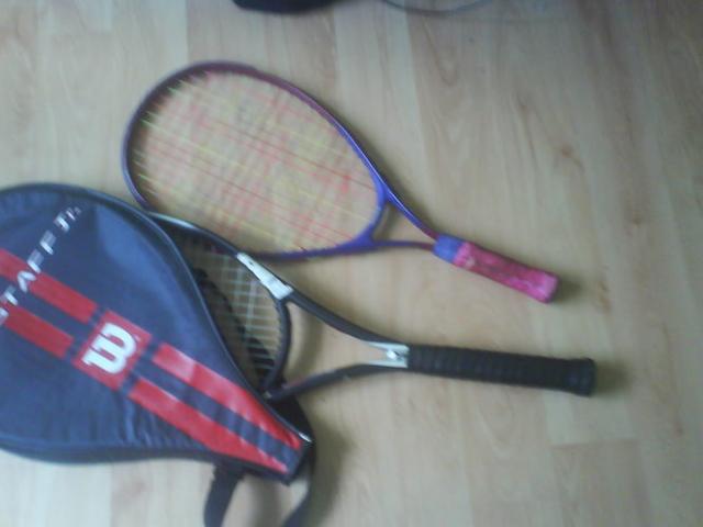 dvi lauko teniso raketes.Viena vaikiska kita normali.Nedaug zaista su jomis buvo yra deklas
