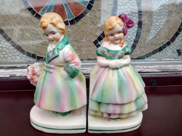 Dvi porinės fajansinės susiglaudžiančios statulėlės Berniukas ir Mergaitė.