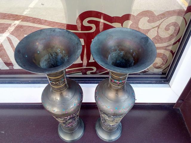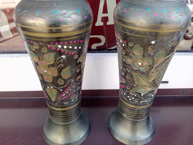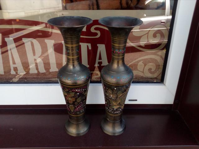 Dvi porinės indiškos žalvarinės raižytos juodintos vazos.