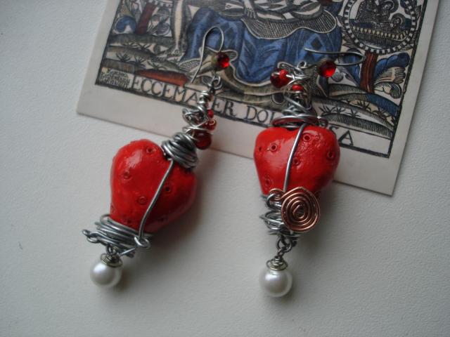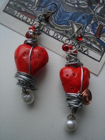 Rankų darbo auskarai, originalūs lipdiniai, varinė, paprasta, pasidabruota vielos, karoliukai