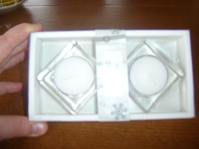 Dvi kvadratinės stiklinės žvakidytės arbatinėms žvakelėms. Naujos, net neišpakuotos.