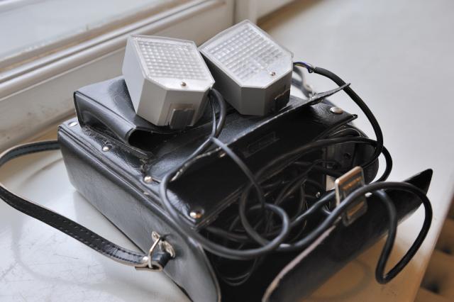 Dviejų blyksčių komplektas, kuris susideda į retro stiliaus krepšelį. Blykstės veikia nuo 220 V tinklo, yra galimybė fotografuoti kartu su dviem blykstėmis iš karto arba po vieną. Galima susikonfigūruoti nebrangią namų studiją.