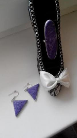 Dvieju daliu rinkinys auskarai + ziedelis 19.5 dydzio.Parduodu visa rinkinuka kartu,atskirai neparduodu.Sidabrinti(silver plated).Rinkinys nesunkus.Vertye:10.40 eur.Lietuvoj apmoku siuntima