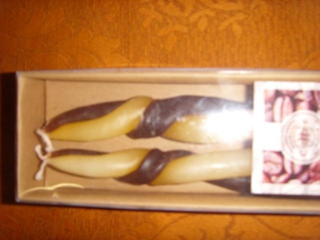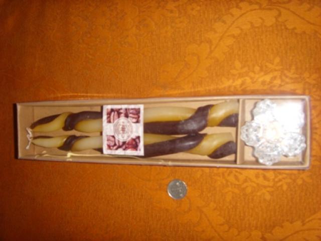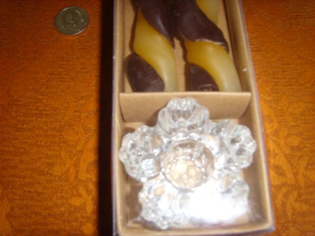 dvi ilgos žvakės ir žvakidė. neišpakuota