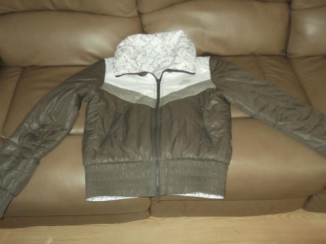 Originali Nike firmos striukė, kurią galima dėvėti dvejais būdais. Vienoje pusėje striukė balta su dryžiukais, kitoje - kavos spalvos. Striukė dėvėta mažai, tad būklė labai gera. Kokybiška, pakankamai šilta, defektų neturi. Įsigykite dvi kokybiškas Nike striukes viename pavidale :)