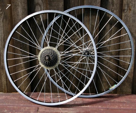 5. Dvi plentinuko padangos Schwalbe 28x700. Kaina 50 lt. 6. Dvi padangos 26' rusvais sonais , Kaina 30 lt. 7. Pora 26' ratu Zhen MengZvaigzde Shimano 7, Assess stebule. Kaina 50 lt. 8. 28' galinis ratas, ratlankis Exal ZX19 , padanga Continental Puncture ProTection, stebule Shimano FH-RM30. Kaina 65 lt. 9. 26' priekinis Veronique 26'559x16 Kaina 50 lt.