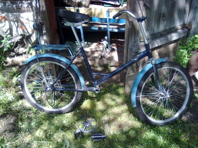 Parduodamas dviratis tinkantis neaukštam žmogui, 47cm remas. Stabdžiai bugniniai, veikia gerai. Ratai ir mazgai sveiki, naujos MTB didelio protektoriaus padangos ir kameros. Reikia keisti centrine aši kadangi sujungimas susidevejes ir dėl to minikliai kliba, taip pat paplyšęs balnelis, tačiau pigiai galima restauruoti. Visa kita tvarkinga.