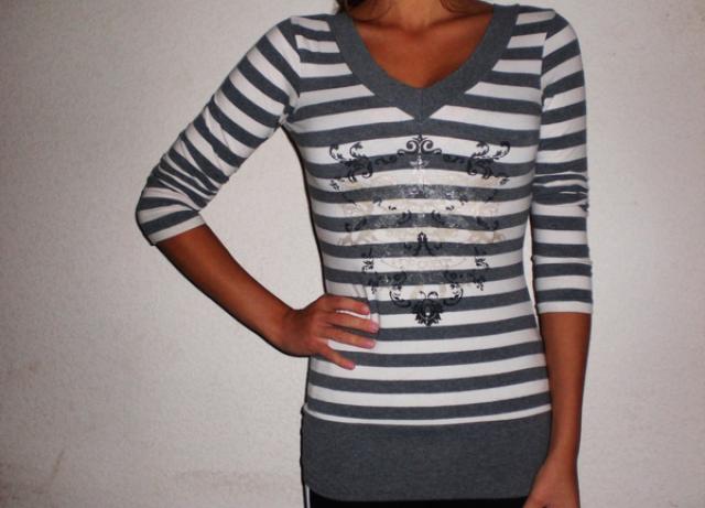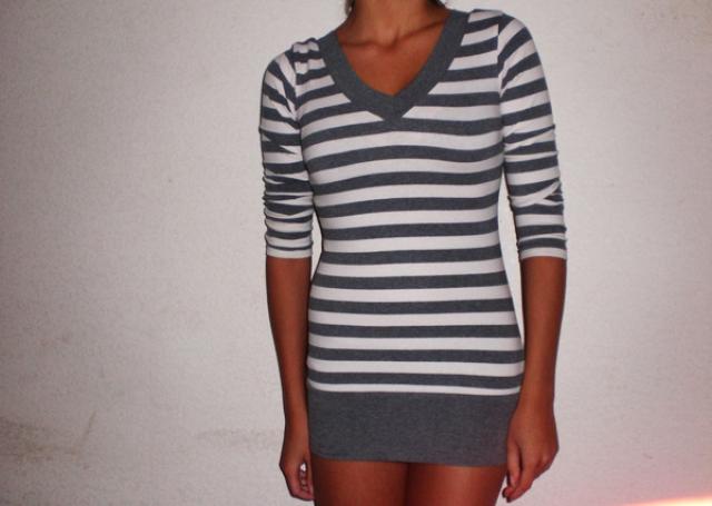Dryžuota trumputė suknytė xs/s dydžiams. Maloni kūnui medžiaga, kuri gražiai išryškina figūrą. Yra raštai, kuriuos galite nešioti nugaroje arba priekyje, nes iškirptės visiškai vienodos :) Rankovės 3/4.