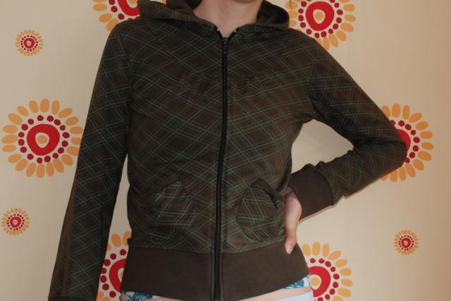 Dydis M, bet tiktų ir nešiojančioms S. labai gražus, rudas su žaliom juostom.
