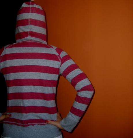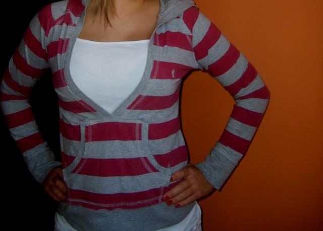 Dryzuotas dzemperis su V formos iskirpte,su kapisonu.